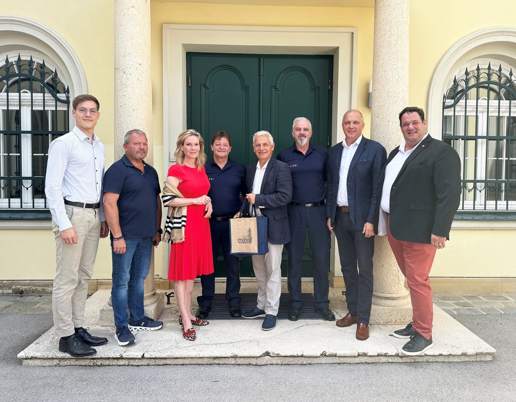 Bürgermeister Johann Zeiner, Vizebürgermeisterin Michaela Haidvogel, die geschäftsführenden Gemeinderäte Erik Baldassari und Markus Waldner, aber auch Bezirkshauptmann Philipp Enzinger und der Leiter der Maria Enzersdorfer Sicherheitsabteilung, Roman Schiener, nahmen seinen Ruhestandsantritt zum Anlass, Thomas Hofbauer für seinen Einsatz für Maria Enzersdorf zu danken und ihm mit einem Maria Enzersdorf-Sackerl alles Gute für die Zukunft zu wünschen.