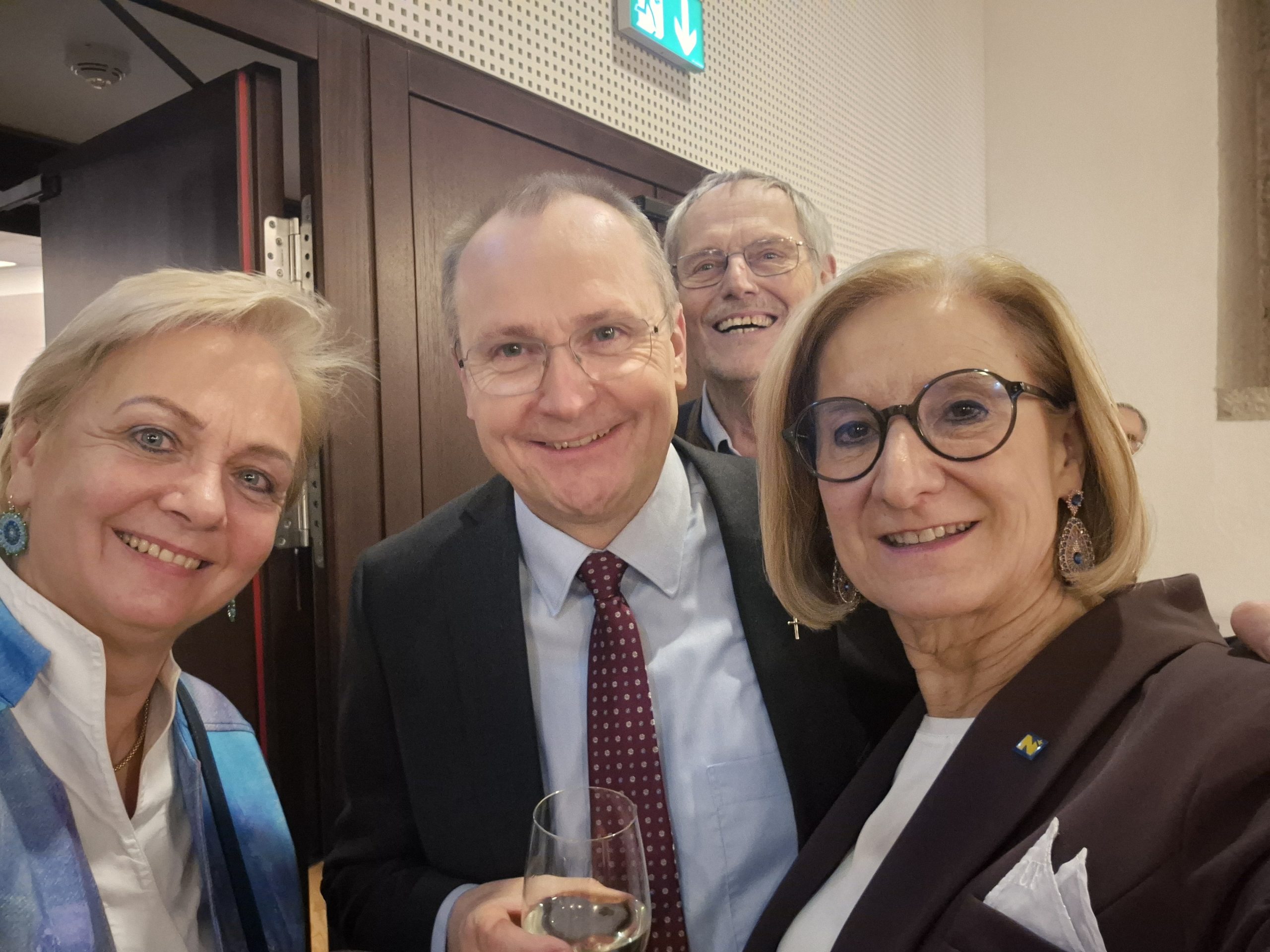 Nach dem offiziellen Teil des Neujahrsempfangs mischte sich die Landeshauptfrau unter die vielen Gäste und genoss bei Weinen und kulinarischen Schmankerln vom Heurigen Schmid den Abend.