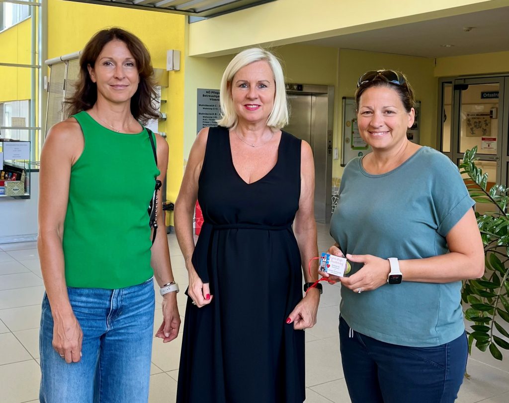 Freude über den Besuch aus Perchtoldsdorf im Pflege- und Betreuungszentrum Vösendorf: Gemeindemitarbeiterin Sonja Kaltenbrunner, Direktorin Dipl. KH-BW Elisabeth Grötzl und Sozialreferentin Daniela Rambossek (v. l. n. r.), Foto: Marktgemeinde