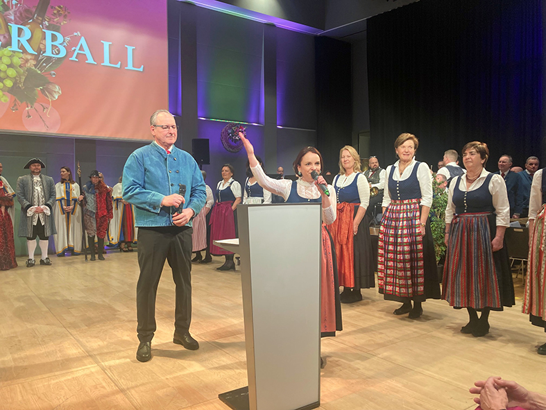 Davor zogen die Hauerfrauen gemeinsam mit dem Prinzenpaar Angelika und Martin sowie der Faschingsgilde Turmrucker unter den Fanfarenklängen der Perchtoldsdorfer Blasmusik in den Festsaal ein. Dort hatten bereits Hunderte Ballgäste, darunter die Spitzen der örtlichen Geistlichkeit und Politik, ihr Schnitzerl gegessen und klatschten fleißig Beifall, als die amtierende Winzerkönigin Johanna I. den Ball für eröffnet erklärte.