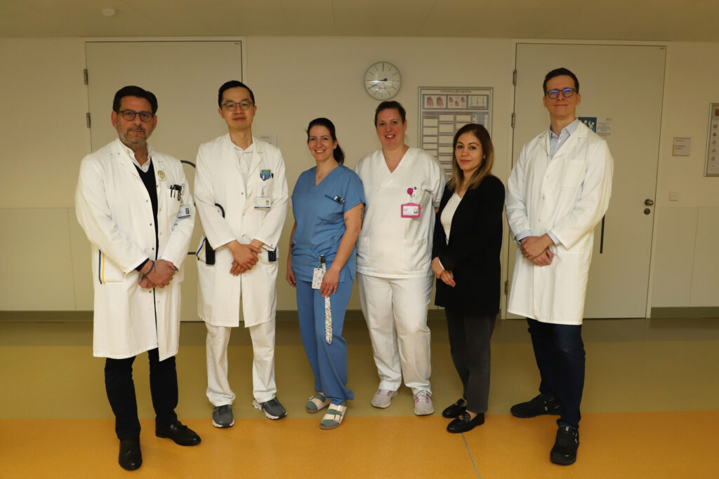 Innovatives Home-Monitoring-Programm für Patientinnen und Patienten mit Herzschwäche (Herzinsuffizienz) im Landesklinikum Mödling – v.l.n.r. Abteilungsvorstand Innere Medizin Prim. Dr. Polys Polydorou; OA Dr. Li Do; Stationsleitung Ambulanzen DGKP Kathrin Kraus; Ordinationsassistentin Daniela Völker; Bereichsleitung Ambulanzen DGKP Devrim Karimi, BSc; OA Prof. Dr. Martin Grübler NÖ LGA – Landesklinikum Baden-Mödling Foto: